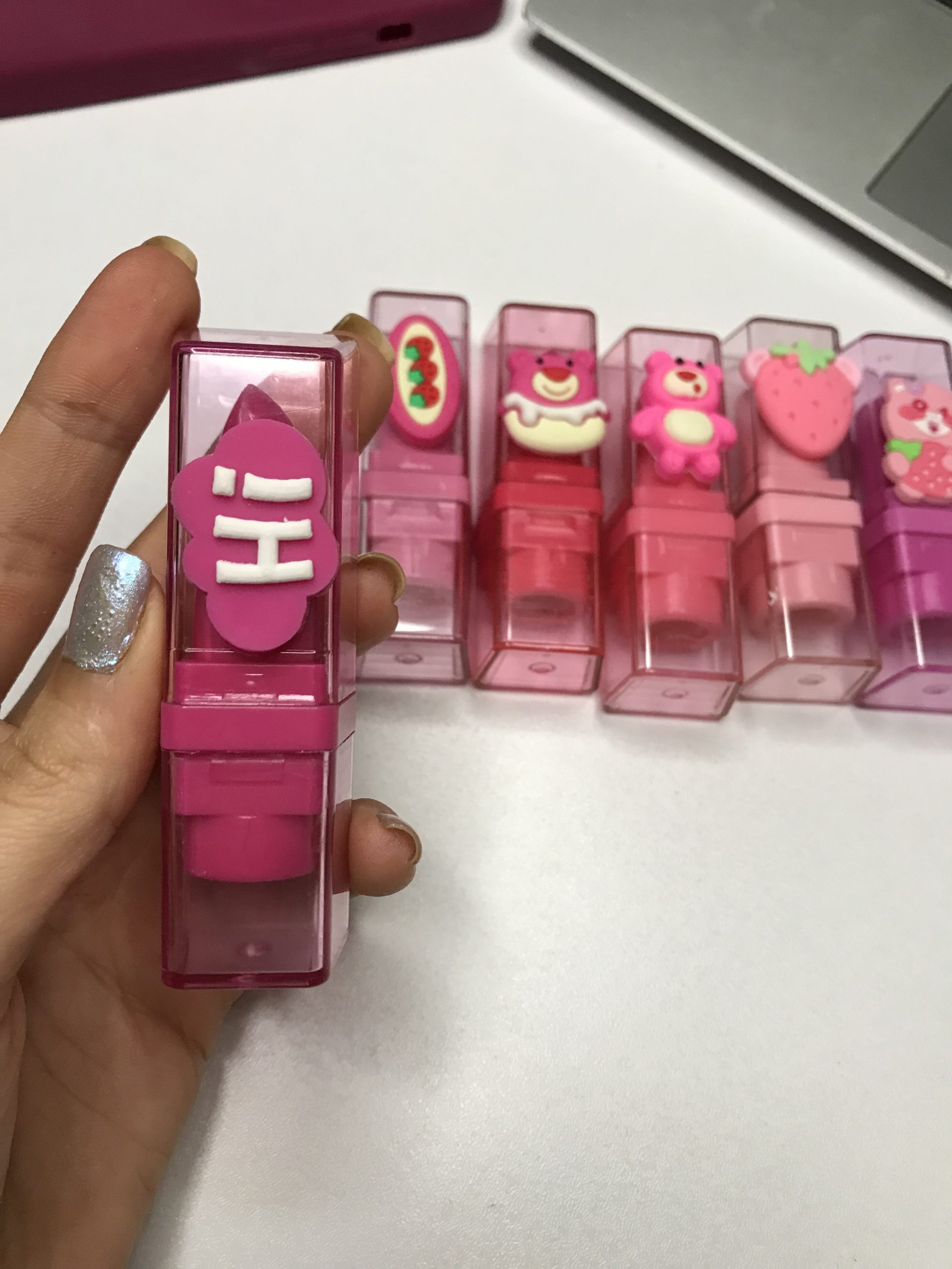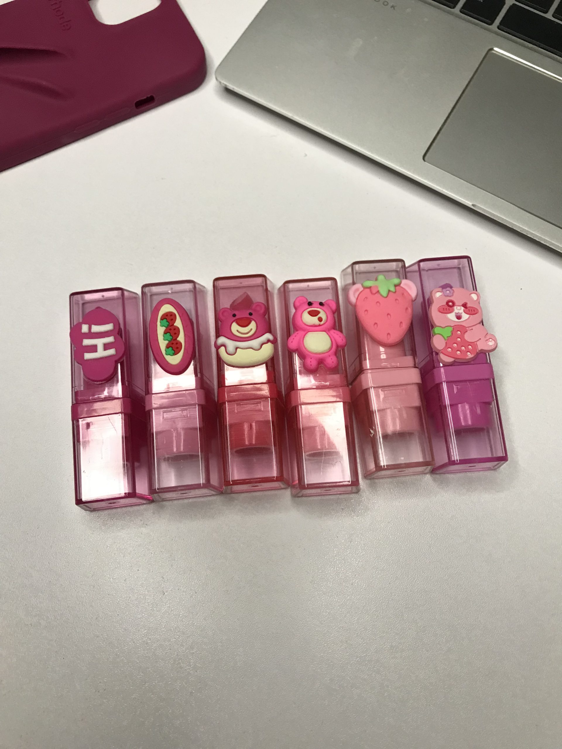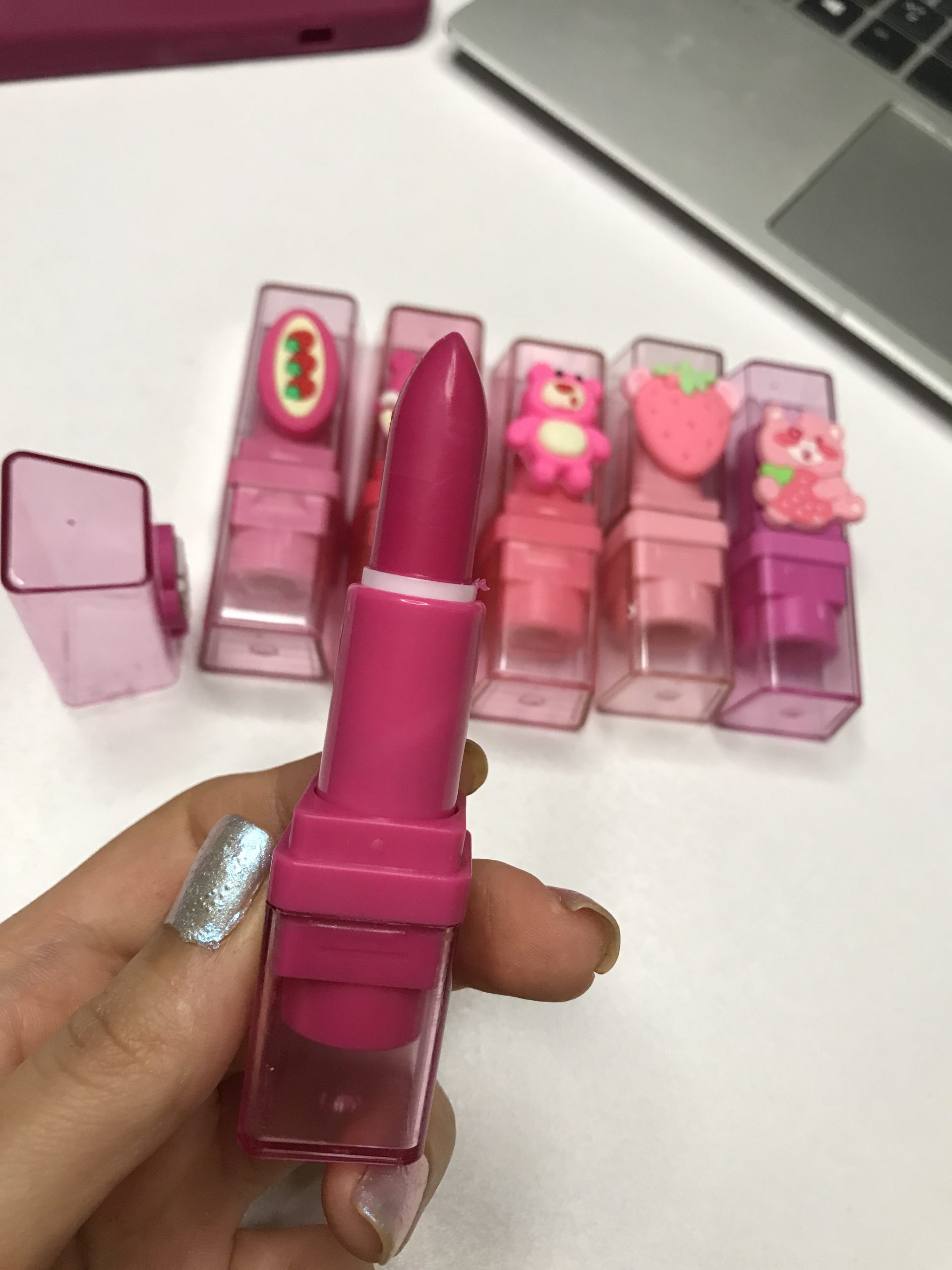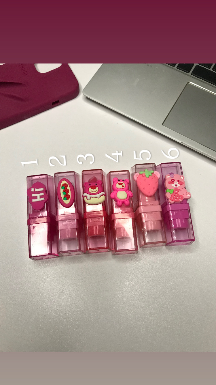 بالم لب حرارتی خرسی جذاب که ۶ تا شکل جذاب داره هرکدوم از اون یکی خاص تر کیوت روی لب صورتی میشه بوی مزرعه توت فرنگی وانیل میده