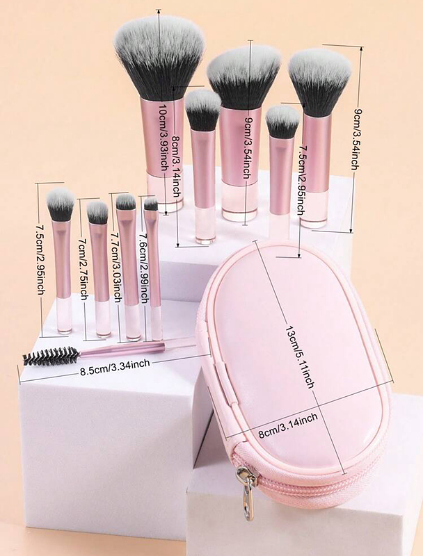 این ست براش مینی شامل 10 عدد براش کاربردی است. این براشها سایز کوچکی دارند و شما میتوانید برای استفاده روزانه و مهمانی از آنها استفاده کنید. اما نکته قابل اهمیت این است که این براش شین به اندازه کف دست و قابل حمل است. شما میتوانید این براشها را در کیف قرار دهید و به مهمانی بروید؛ همچنین میتوانید بار چمدانتان را سبکتر کنید و سفری لذتبخش را تجربه کنید.