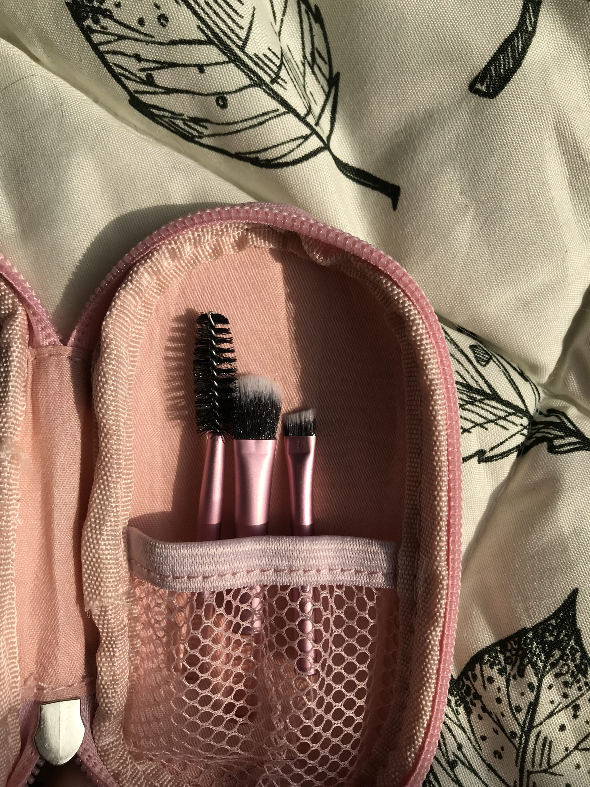 این ست مینی براش 10تایی در یک کیف کوچک قرار دارند. این کیف کمک میکند تا براشها در سفر یا هنگام حمل آسیب نبینند و سالم باقی بمانند. همچنین این کیف کوچک به تمیز و بهداشتی ماندن براشها کمک میکند؛ چرا که براش آرایشی آلوده باعث بروز جوش صورت میشود.