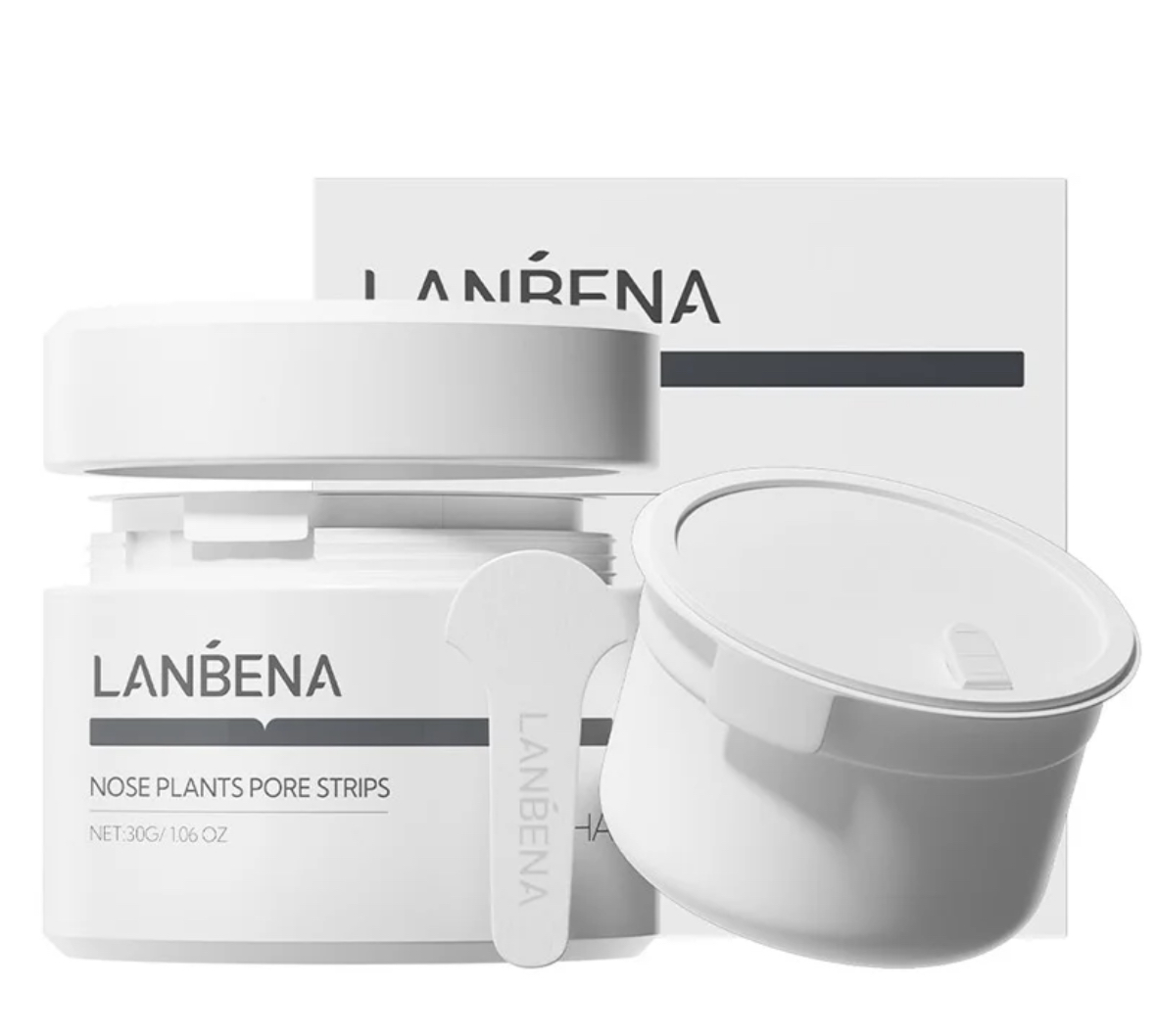 چسب بینی لانبنا کاسه ای دارای 60 عدد کاغذ مخصوص، از بین برنده جوش های سر سیاه و تخلیه کننده منافذ باز پوست است. این چسب که به قاتل جوش های سرسیاه معروف است، پوست را از جوش سر سیاه، موهای ریز و جوش های سر سفید پاکسازی کرده و منافذ را کوچک می کند. استفاده از این چسب پوست را شفاف و درخشان می کند.