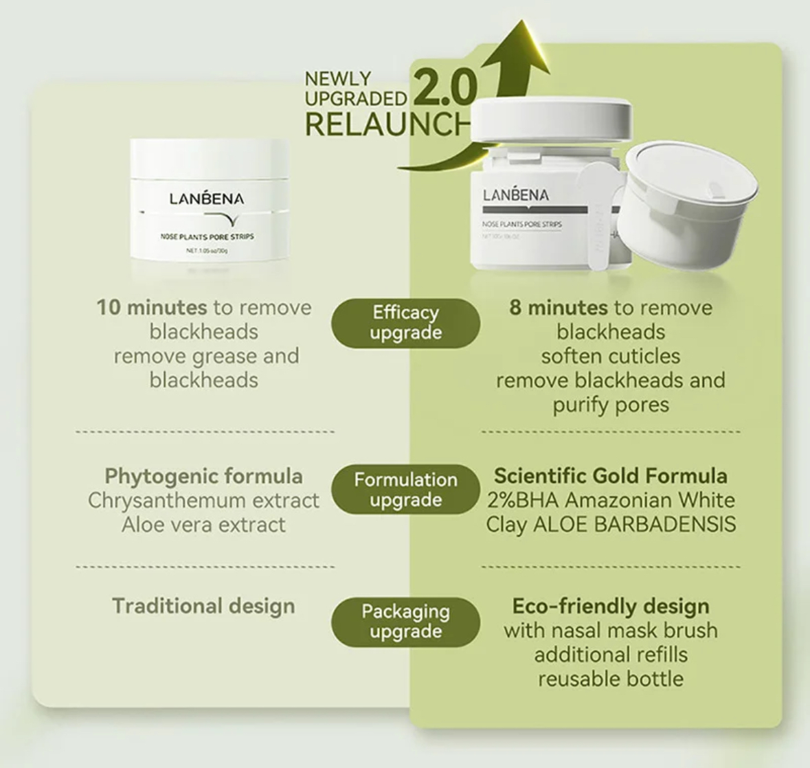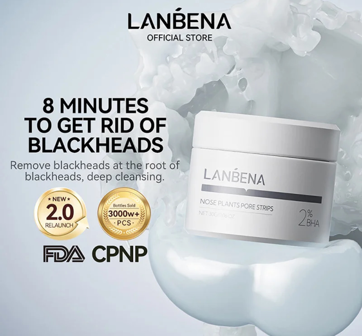 چسب بینی لانبنا، محصول کشور کره و دارای 60 عدد پد مخصوص می باشد. سری جدید چسب بینی لانبنا دارای 2% BHA یا بتاهیدروکسی اسید یا همان اسید سالیسیلیک، بوده و در عرض فقط 8 دقیقه تمام جوش های سر سیاه صورت برداشته شده و منافذ پوست به طور کامل پاکسازی می گردد. سالیسیلیک اسید منافذ باز را کوچک کرده، ترشح چربی پوست را تنظیم و از ایجاد جوش جدید چلوگیری می کند.