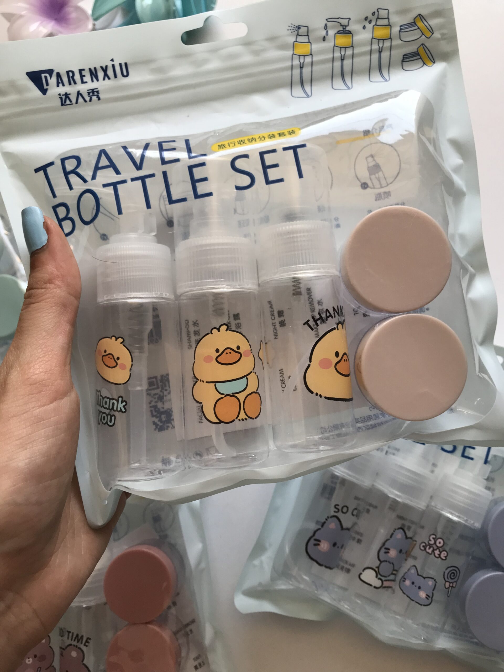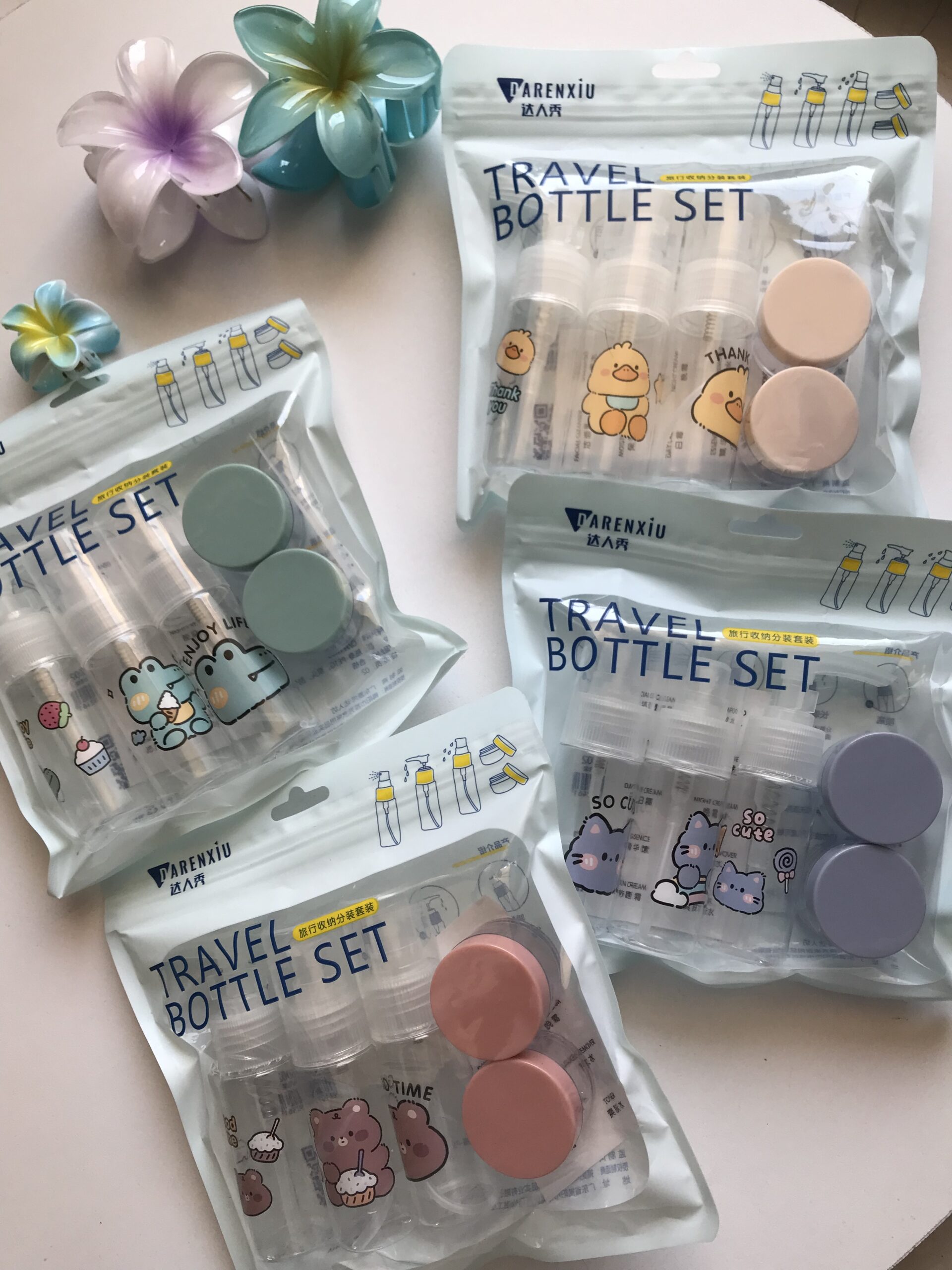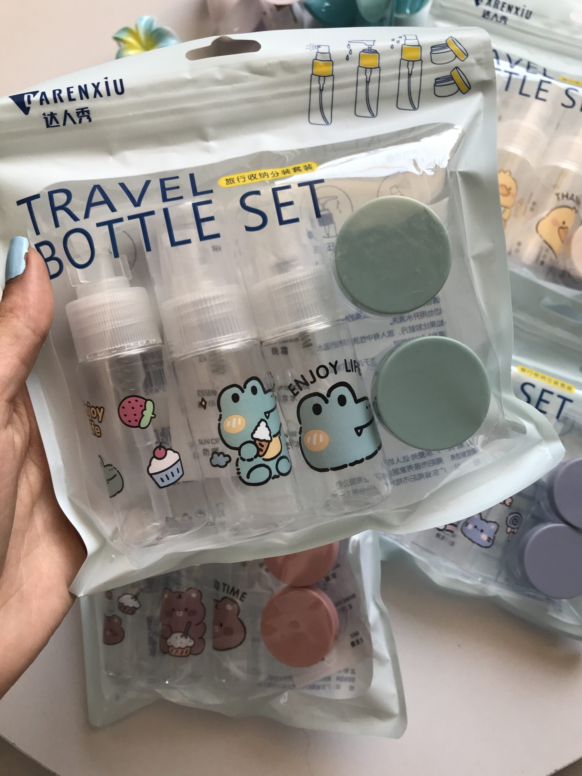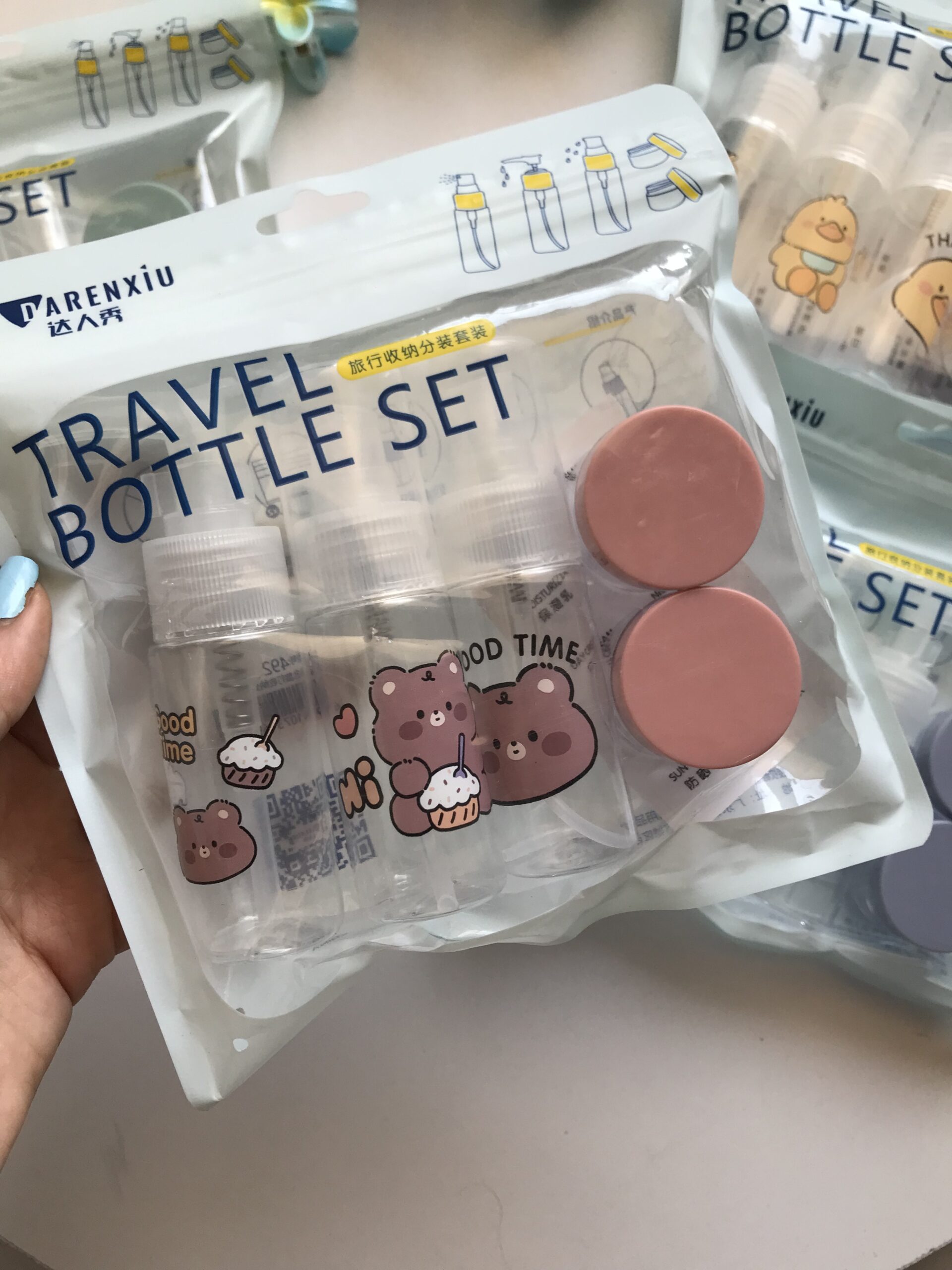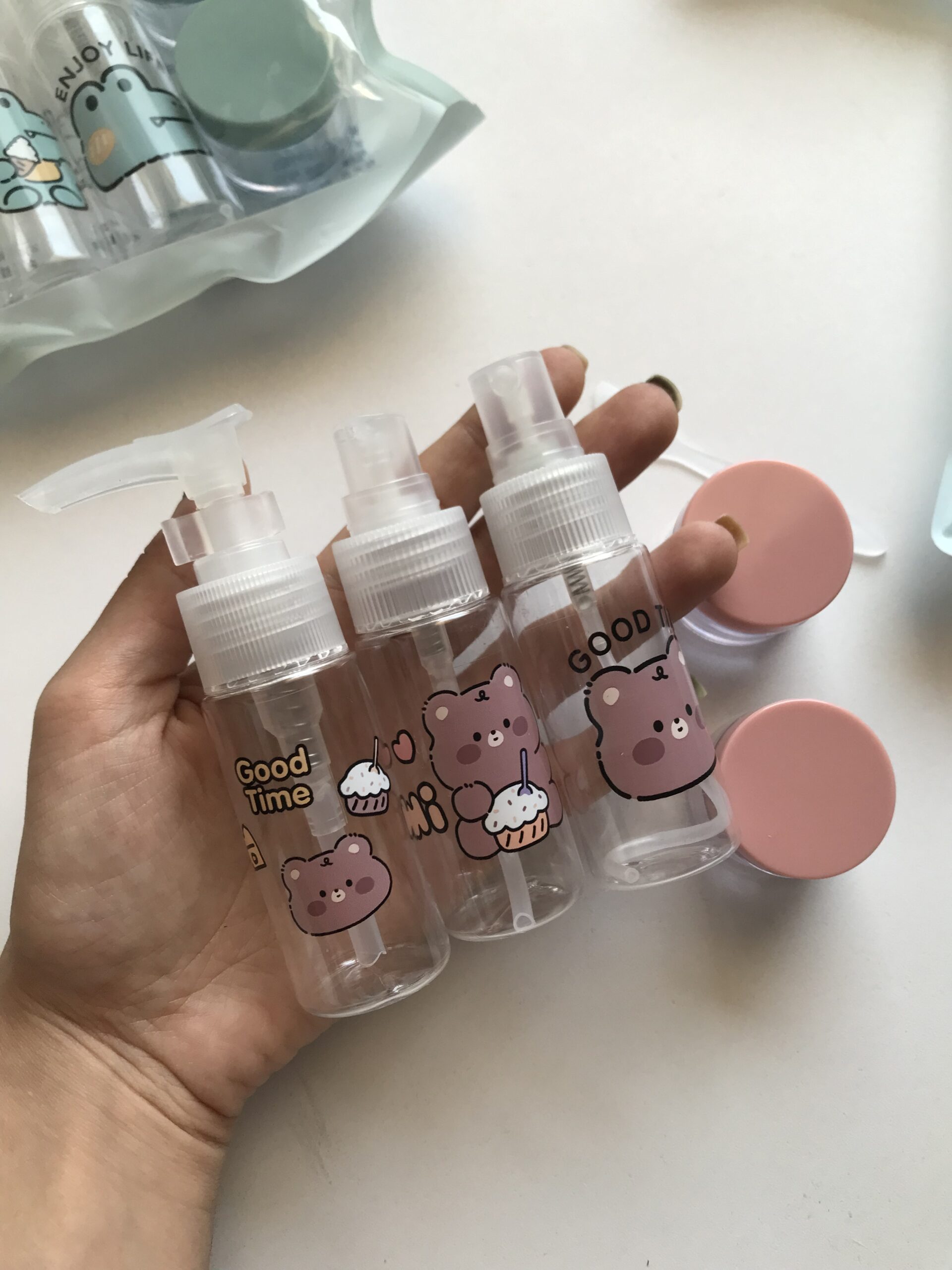 جدید ترین پک ارایش که 5 تیکه هستش 3 تا بطری داره اسپره برای شوینده و بوسیون 2 تا ظرف برای یه کاردک و برچسب برای اینکه مشخص بشه