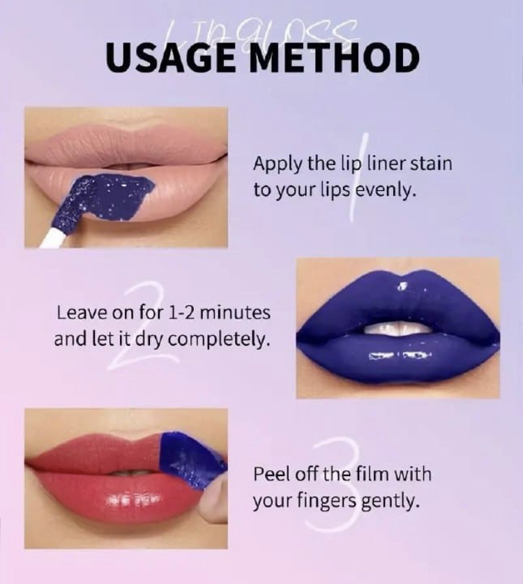 - روی لب یه لایه نازک بزنید بعد از خشک شدن جدا کنید